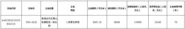 位于前海桂湾的T201-0232宗地,拟于7月14日15时出让,挂牌起始价11.58亿元。