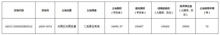 光明的A509-0074宗地拟于6月27日15时出让,挂牌起始价19.94亿元。