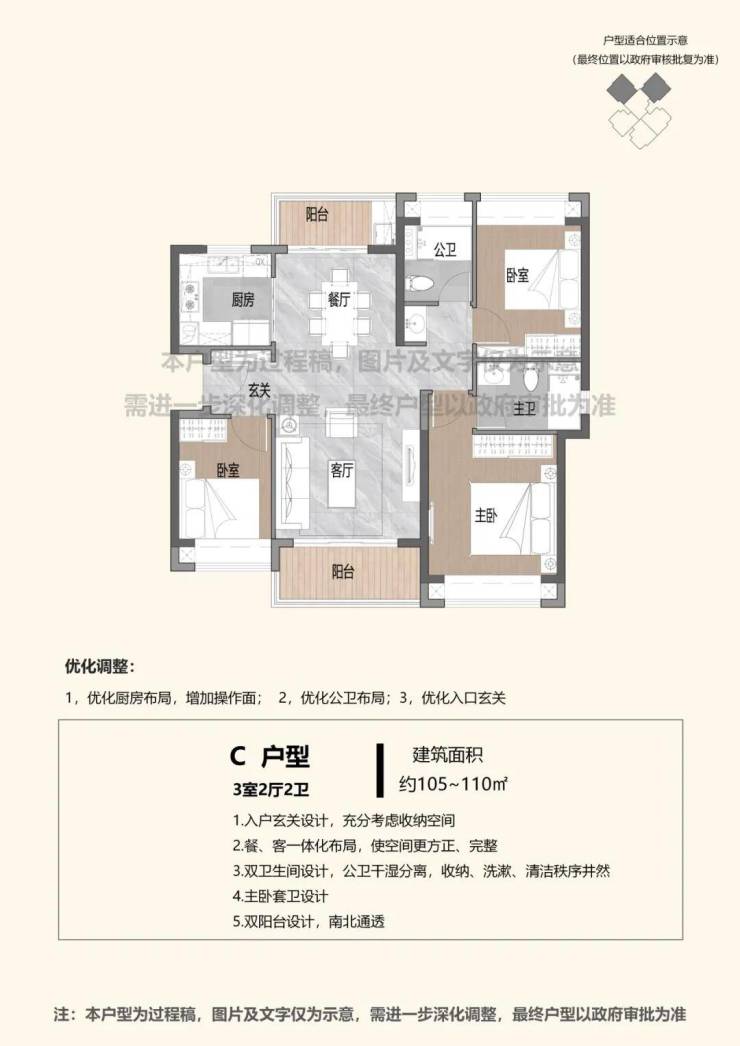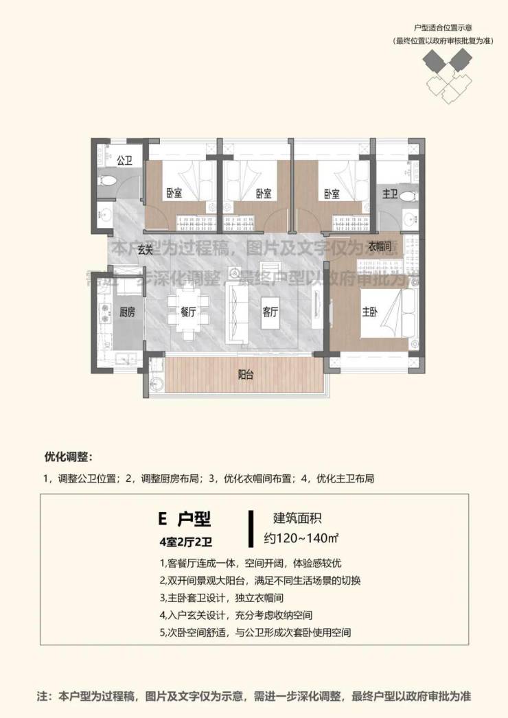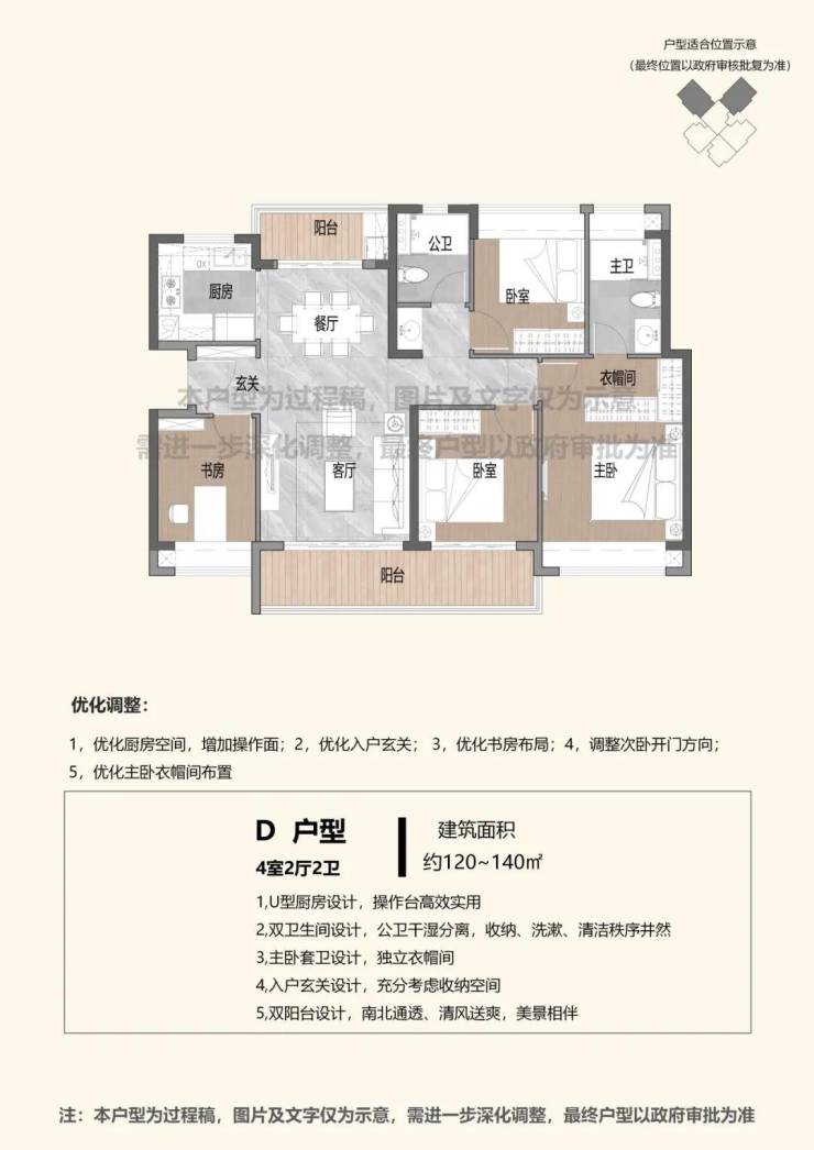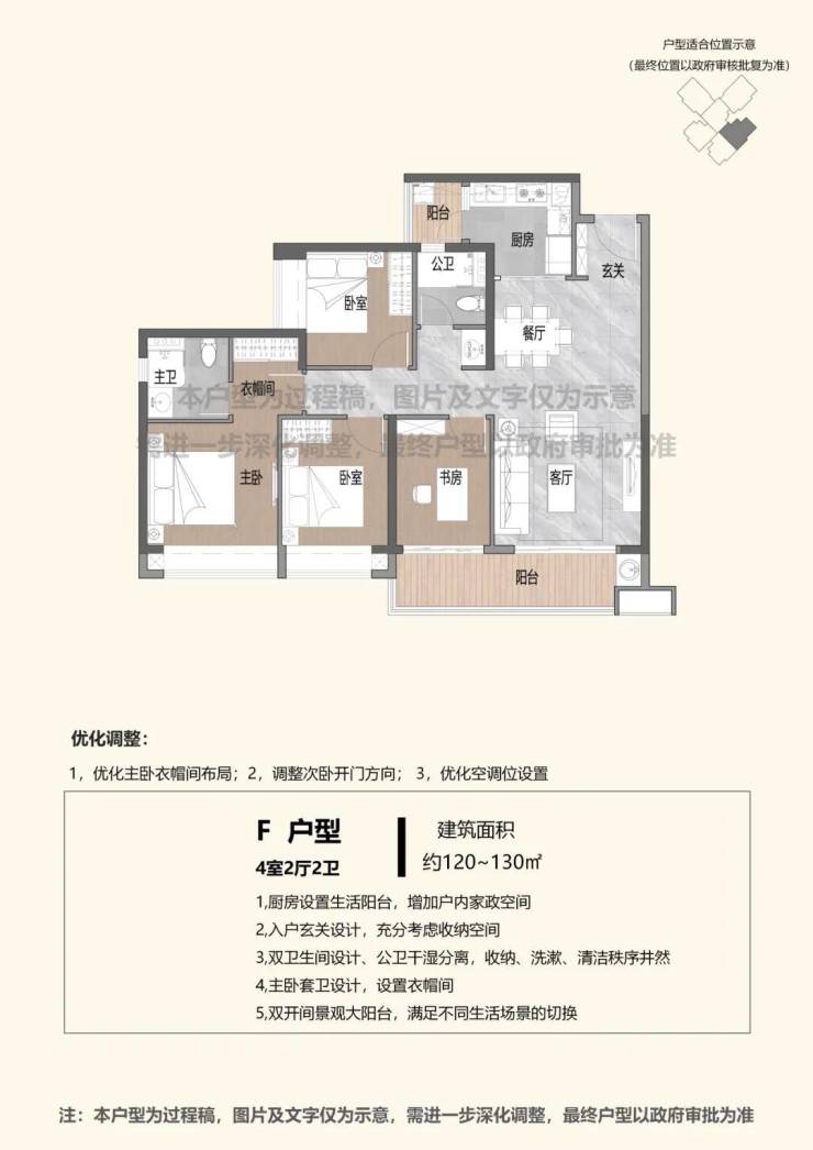 关于回迁房的户型,2023年9月香蜜二村棚改公示了相关户型优化方案介绍,户型以3房、4房为主,建面约100-140㎡不等。(以下仅供参考,具体以最终官宣为准)
