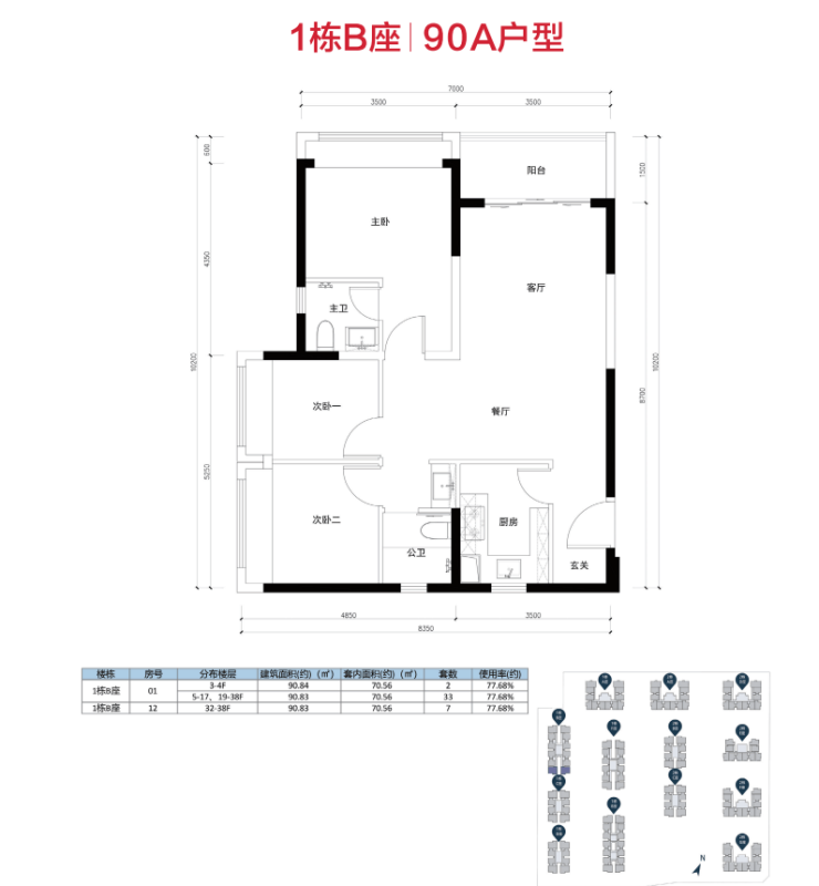 项目70㎡的户型主要有经典竖厅和双龙抱珠两种格局可选;90㎡则均为普通竖厅格局。部分户型图展示如下: