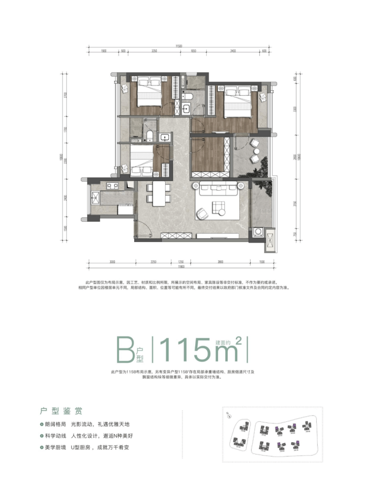 综合来看,整体实用性较高,其中115㎡的户型比较惊喜,其余户型也比较经典。