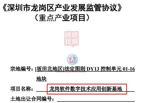 根据产业发展监管协议显示,该项目将建龙岗软件数字技术应用创新基地。