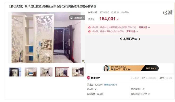 同样是今年5月份,松岗红星格布村新区一套33㎡的一居室就从1元拍到了15.4万元。