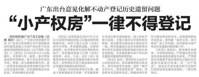 7月7月日,广东印发了《广东省自然资源厅关于加快解决国有建设用地上不动产登记若干历史遗留问题的指导意见》,强调“小产权房”一律不得登记,“转正”这条路似乎彻底堵死了。