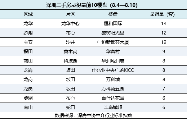 积极响应会员需求,深房中协通过对二手房录得量楼盘数据进行梳理,自本周起,新推出深圳二手房录得量热门片区及楼盘信息,具体如下:
