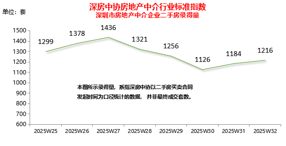 经深房中协统计,2025年第32周全市二手房(含自助)录得1,216套,环比增长2.7%。二手房录得量连续2周出现小幅增长。