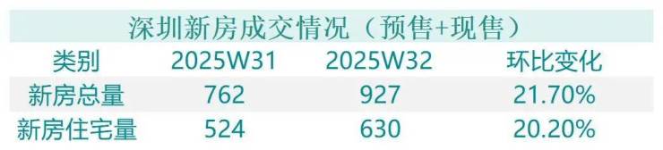 据深圳市房地产信息平台数据,2025年第32周全市新房(预售+现售)成交量出现明显增长。