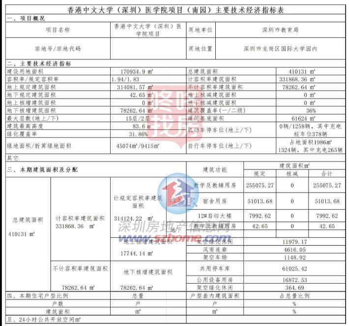 根据规划显示,港中大(深圳)医学院项目(南园)总建面约41万平,计容建面约33万平,主要建筑为教育及辅助用房,宿舍等。