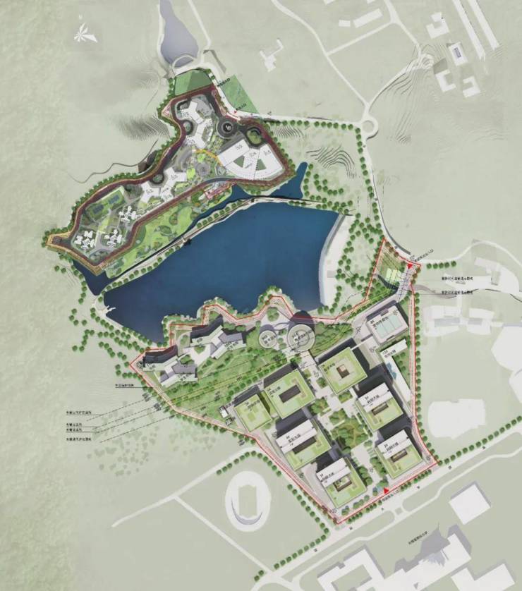 设计尊重自然,合理利用地形,通过建筑与山水的融合,校园空间由城市向自然逐渐过渡,打造和谐共生的生态校园;利用廊道串联建筑单体,化零为整,促进校园公共交往,塑造脉络相连的有机校园;将科技、智慧、绿色的理念融入项目设计全过程,采用多种低碳措施,创造绿色低碳的山水校园。