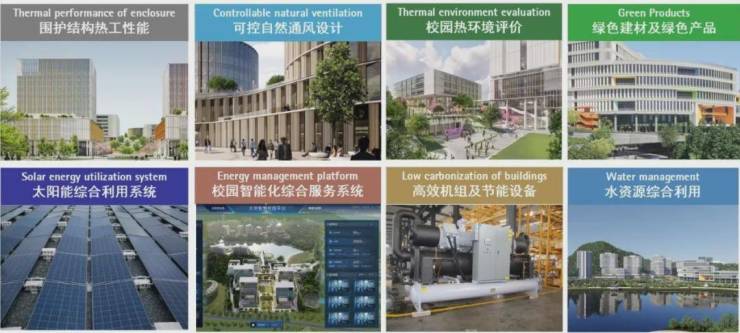 设计从能源低碳化、建筑低碳化、碳管理平台等三大方面实现图书馆和行政楼“近零碳”建筑设计目标。