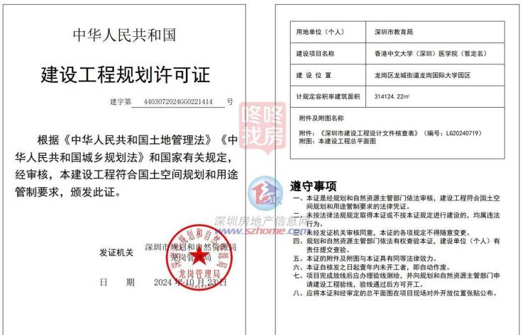 近日,11月4日,香港中文大学(深圳)医学院项目南园总平面图对外公告。
