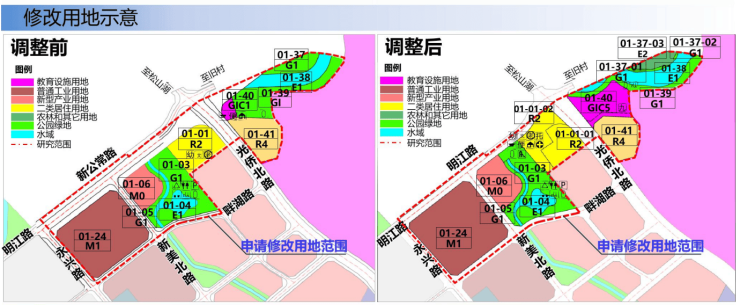 根据已批准的[光明北地区]法定图则(修编),本次调整包括规划新公常路及01-01、01-03等十一个地块,规划情况如下:
