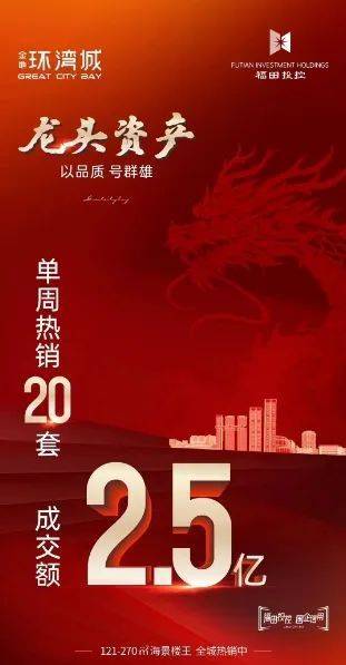 例如,福田热盘金地环湾城,上周热销了20套房源,周成交金额达2.5亿。