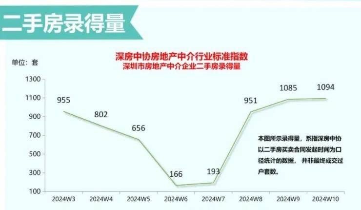 据深圳房地产中介协会数据显示,上周(3月4日-3月10日)全市二手房(含自助)录得1094套,环比增长0.8%。