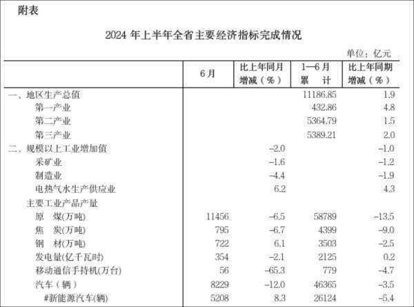 山西上半年主要经济指标完成情况山西统计局