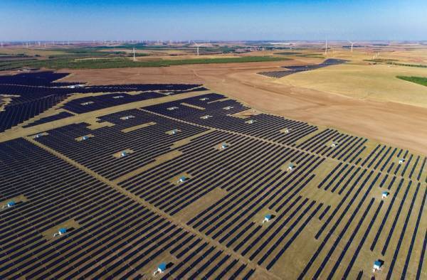 2023年5月23日在兴安盟乌兰浩特市拍摄的呼和马场风电光伏场(无人机照片)。IC Photo