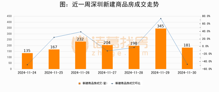 【深圳成交日报】11月30日新房成交181套、二手房128套;涨价房源20套