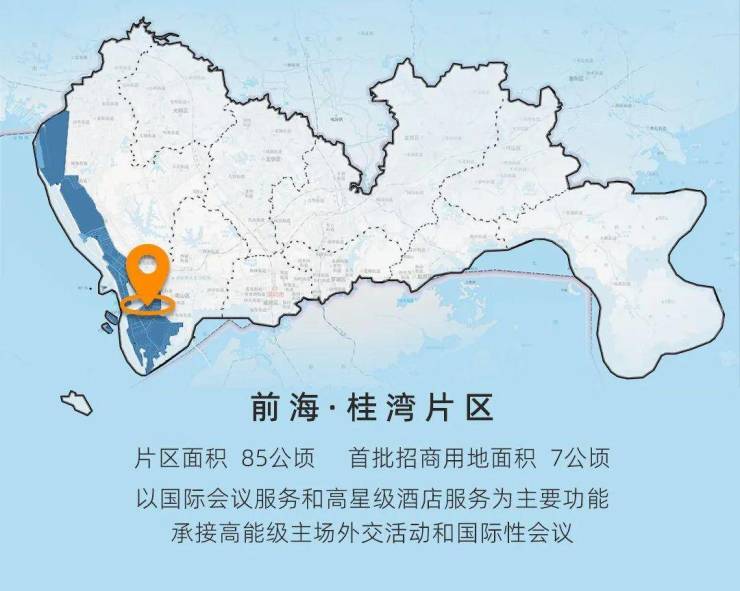 位于前海城市新中心,金融和总部企业集聚。片区面积85公顷,首批招商面积7公顷(其中商业用地7公顷)。