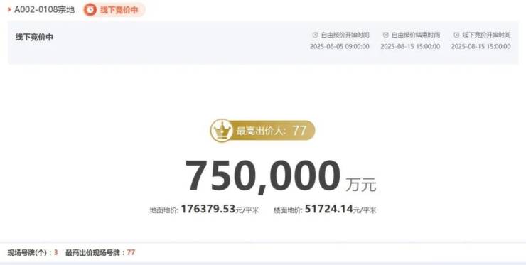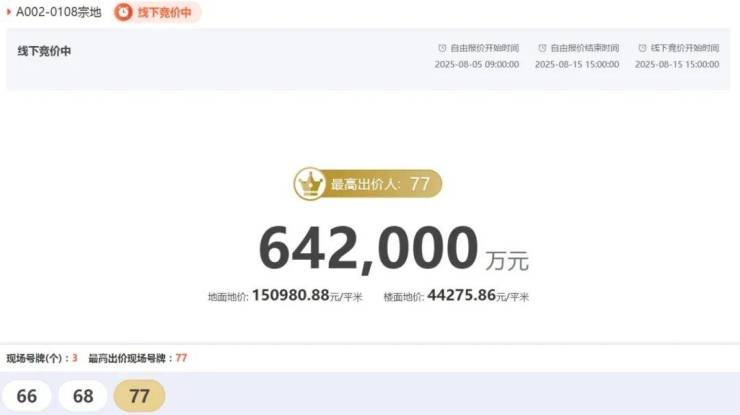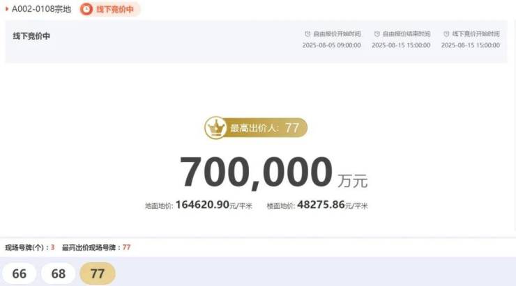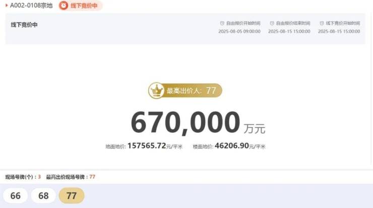 77号的果断应价,和68号的从容跟价,也让这场土拍变得焦灼又精彩。