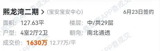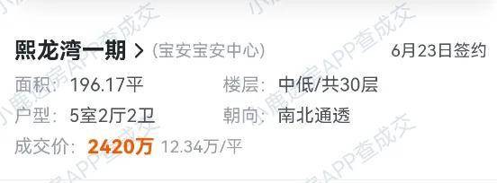 熙龙湾的成交价格与之相近。据平台显示,6月成交的两套房源在12-13万/㎡之间。
