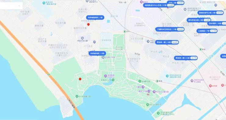 环欢乐港湾附近的均为10万+/㎡的豪宅小区,具有代表性的熙龙湾、壹方中心等。