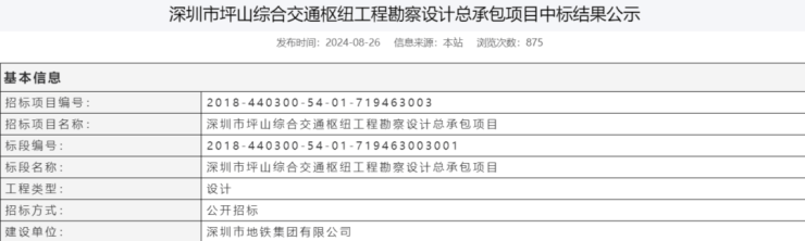 去年8月份,深圳公共资源交易中心公示《深圳市坪山综合交通枢纽工程勘察设计总承包项目中标结果》中的工程范围也提到23号线。