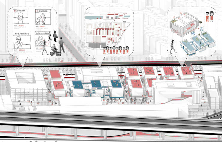 选手自述:提案“双城共和·像素触媒”关注深圳独特城市发展背景下,普遍的产业园与城中村相互割裂,使用人群高度重合,身份认同矛盾的共同叙事。本组提案将人群作为研究线索,关注人群的生活行为、城市身份以及社群模式。在此基础上,识别出人的像素化特征,并通过人与像素化的产业模块的互动,构建智恒产业园演进的理想模式,实现产业聚集、社群互联、建筑边界重塑等目标。在建筑界面植入自组织的“像素”空间,并以此作为触媒,一方面贴合多样化人群的需求,一方面实现产业园的动态升级。