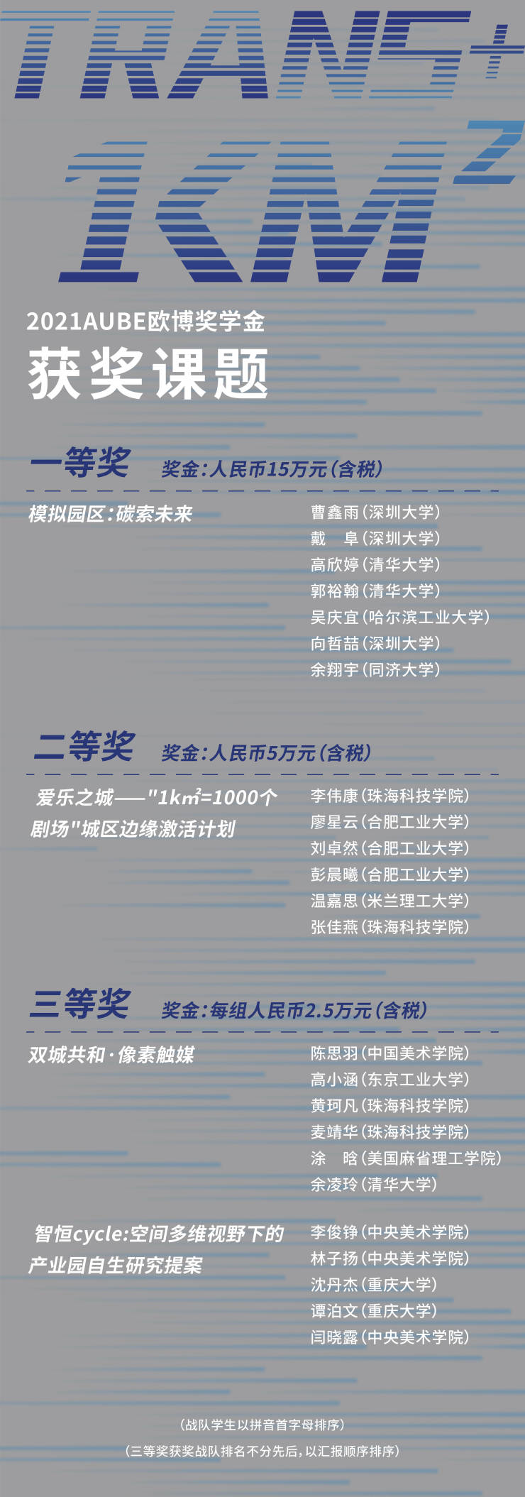 2021年AUBE欧博奖学金以“TRANS+ 1KM² 双碳目标和升级转型背景下的产业空间研究”为题,把目光聚焦到一个更加具体、实际城市空间中的具体问题,试图为学子搭建一个学院之外,预备设计师的“实战”舞台。