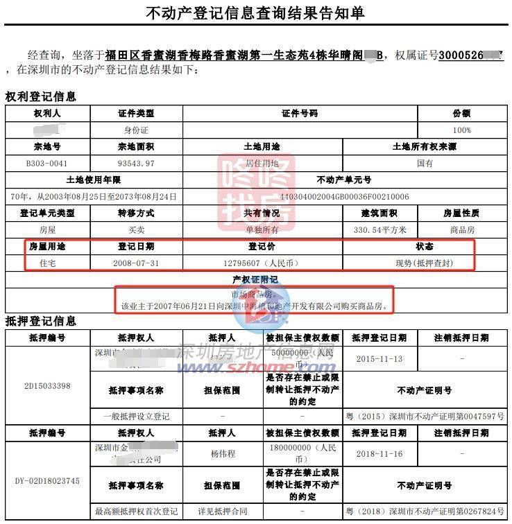 该房产是前业主在2007年购买新房,2008年登记价格为约1280万元,经过16年时间,价格翻了超过4倍。