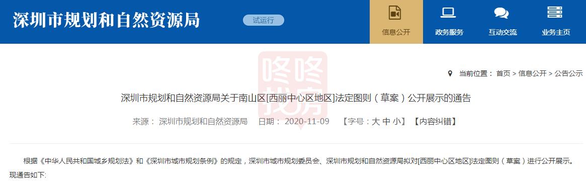 11月9日,深圳市规划和自然资源局发布关于南山区[西丽中心区地区]法定图则(草案)公开展示的通告,西丽中心区规划图正式出炉!