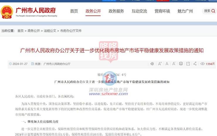 其中,广州1月27日发布《广州市人民政府办公厅发布关于进一步优化我市房地产市场平稳健康发展政策措施的通知》(以下简称《通知》)。