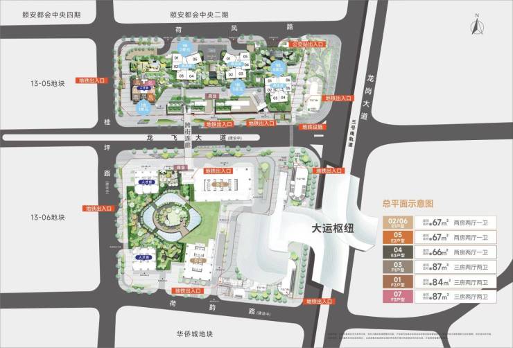 位于龙岗大运枢纽上盖的深铁阅云境,总用地面积约5.6万㎡,规划总建面约52万㎡,物业类型涵盖了普通住宅、可售人才房、办公、商业等多元业态。