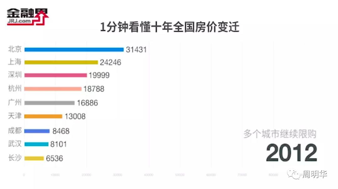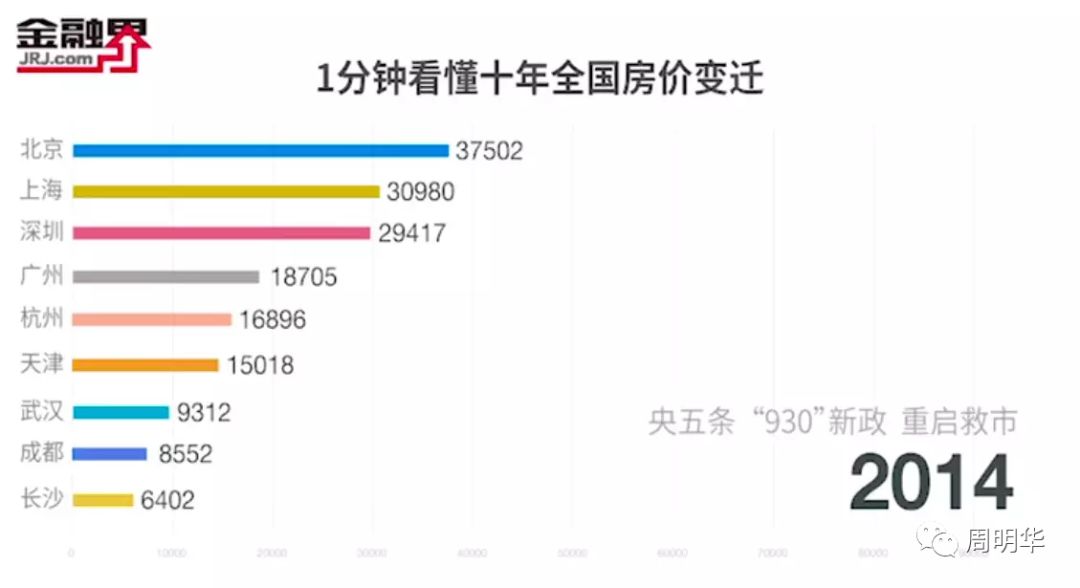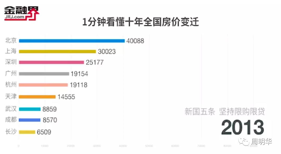 2013年,北京均价突破4w、上海突破3w、深圳直接到了2.5w,广州超过杭州。武汉超越成都,长沙维持稳定。