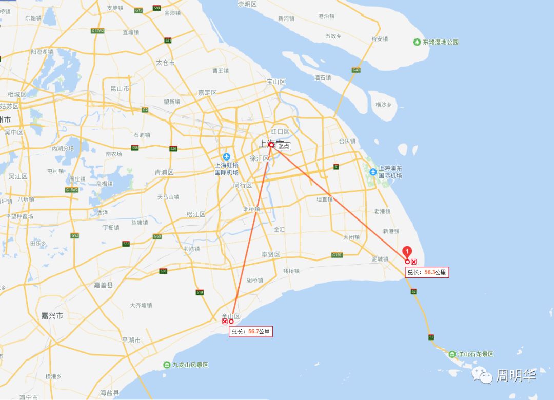 再看上海,金山区也离市中心达到了56公里。特斯拉今年在上海拿的地在临港产业区,也有约56公里。(上图)