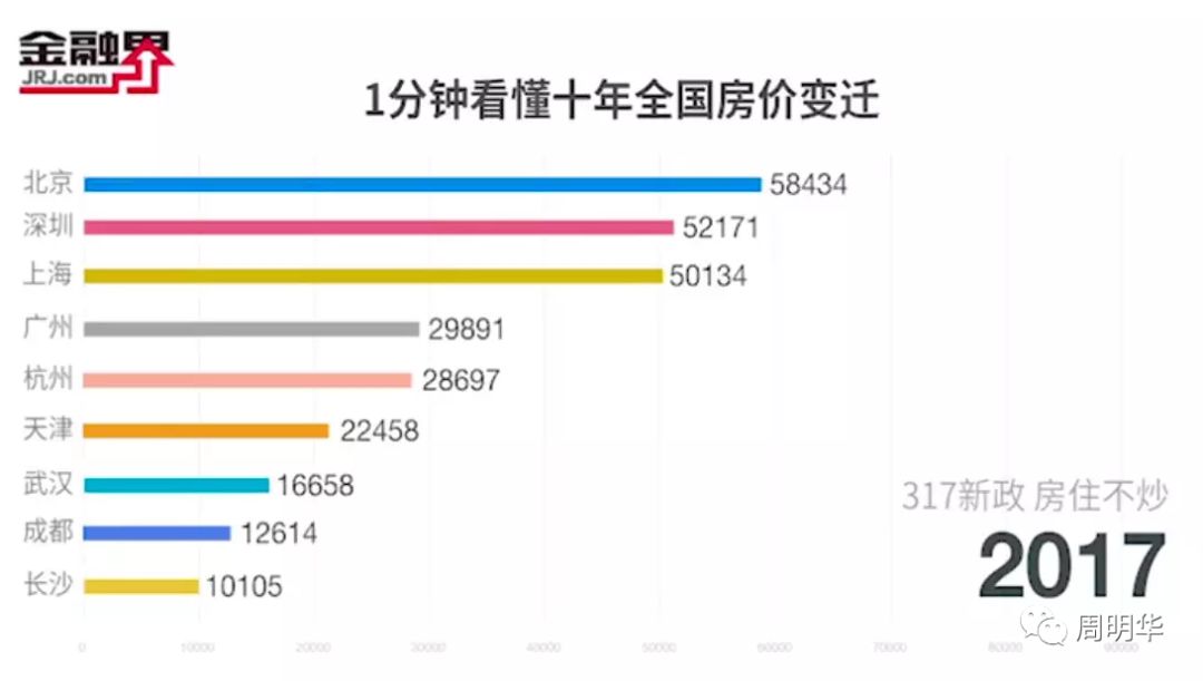 2017年,深圳突破5w,和北京、上海三城市成为5w以上的城市。长沙也突破了1w。