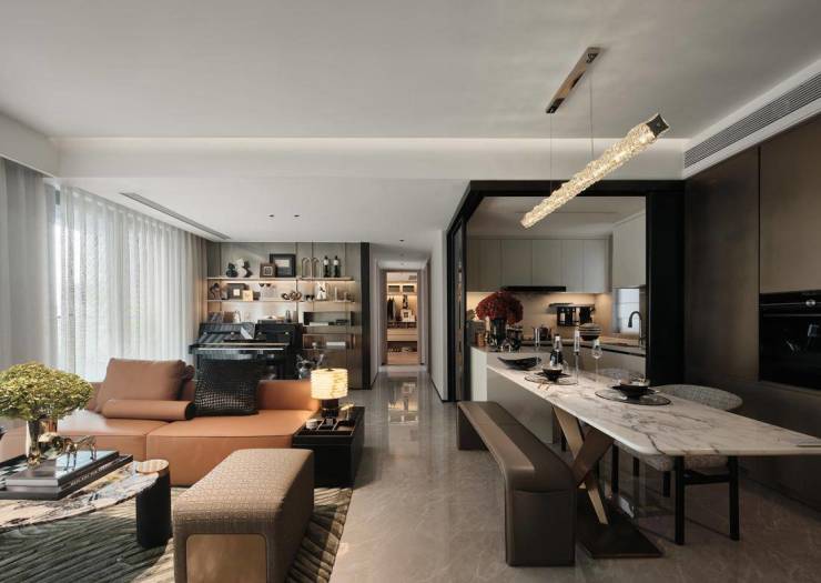 拒绝追风奢华品牌的堆砌叠加,转而对城市菁英的生活习惯持续、深度的解构,以全球五星酒店为蓝本,引入严苛的德系装修标准。从一枚五金的全球遴选,到整体空间的功能美学,在看不见的细节里,造就看得见的品质。