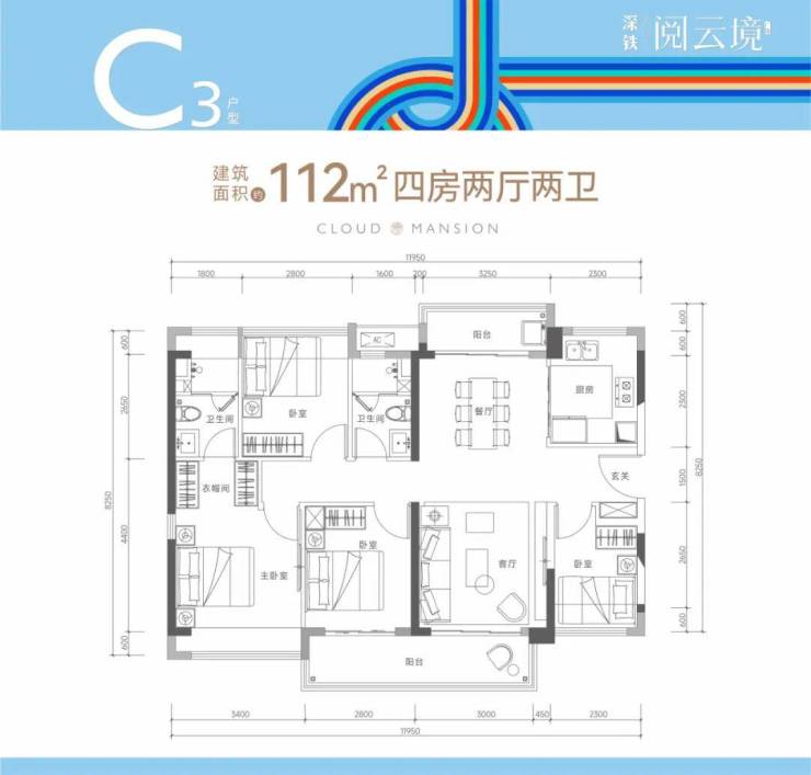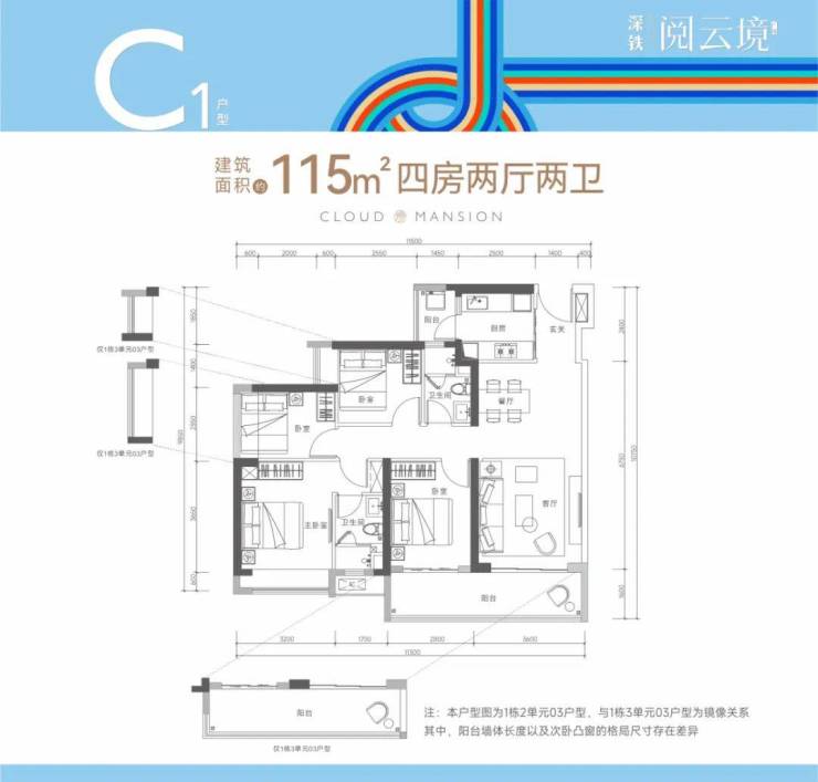 龙岗大运深铁阅云境加推,推出1栋3单元,共145套房源,面积有96-106㎡的3房2厅2卫,112-115㎡的4房2厅2卫户型,备案均价5.02万/㎡,备案单价4.35-5.74万/㎡,总价421-646万/套。