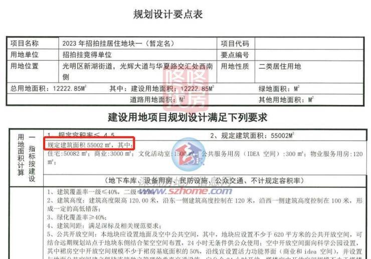 光明 A650-0385宗地,建面约5.5万平,挂牌起始价8.95亿,普通商品住房平均销售价格不高于49300元/平方米(不含室内装修价格)。