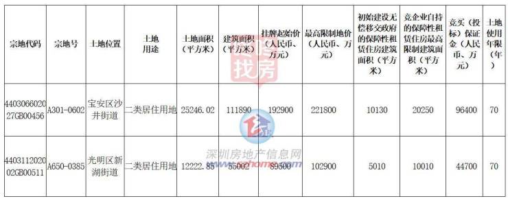 宝安沙井A301-0602宗地,建面约11.19万平,挂牌起始价19.29亿,普通商品住房平均销售价格不高于49400元/平方米(不室内装修价格);