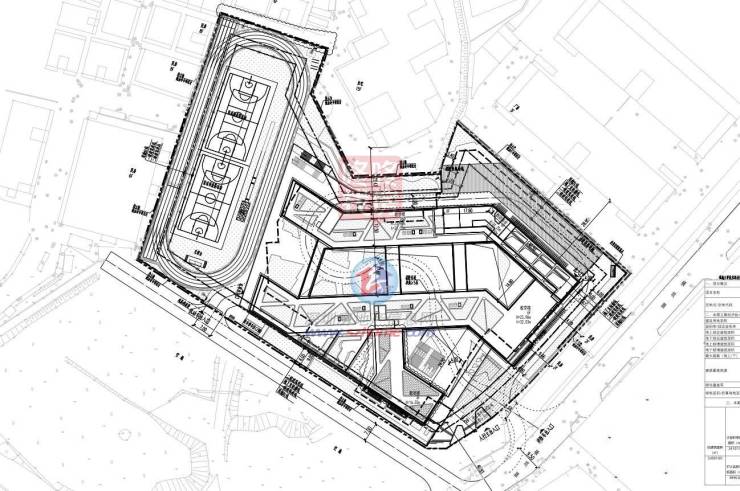 在此基础上,设计方案利用场地标高,在控制主体建筑高度24米以下的同时,形成可以平接室外的半地下一层,充分化解了容量压力,也有利于对总体土方量的控制。此外,为塑造更为和谐友善的邻里关系,架空风雨操场设计将田径场跑道保留在首层地面,以此尽可能为校园与周边地块之间提供充分的采光与通风条件。