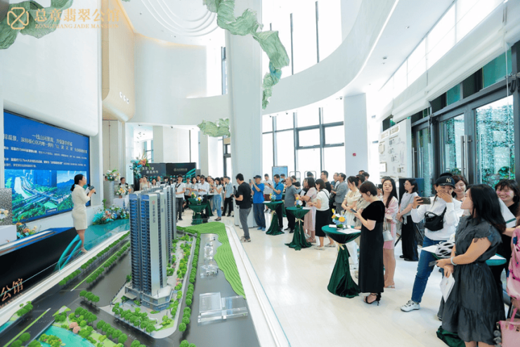 新品发布现场盛况空前,媒体嘉宾纷至沓来,来访者络绎不绝,在销售人员的热情讲解下,营销中心和样板房人潮涌动,共同见证总章翡翠公馆新品的高光时刻。