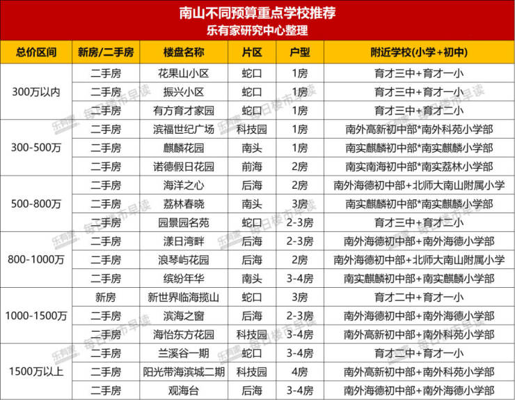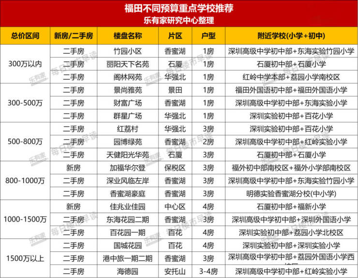 日前,乐有家研究中心整理了福田、南山的部分学区房源,价格预算从300万以内,到1500万以上都有,丰俭由人。