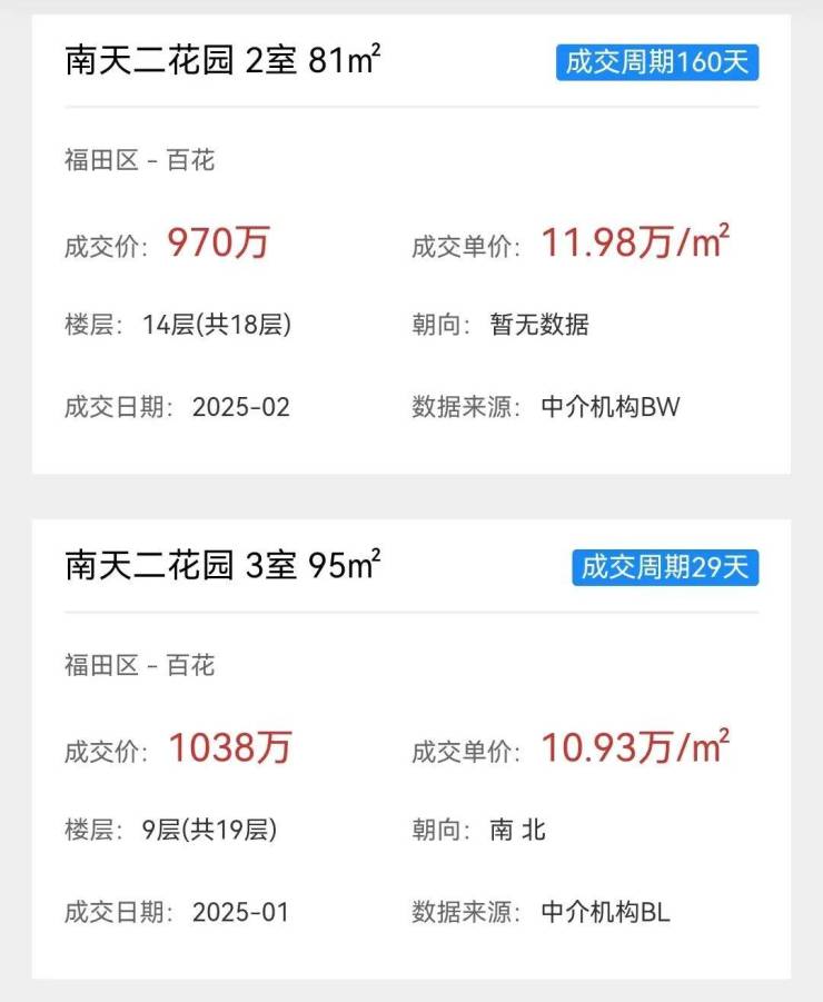南天二花园的价格,也带代表着福田百花片区的房价。
