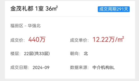 福田金茂礼都成交十分活跃。其中,建面约36㎡1室户型,2024年9月的成交单价约12.22万/㎡,今年2月同户型成交均价达13.97万/㎡,价差达1.75万/㎡!