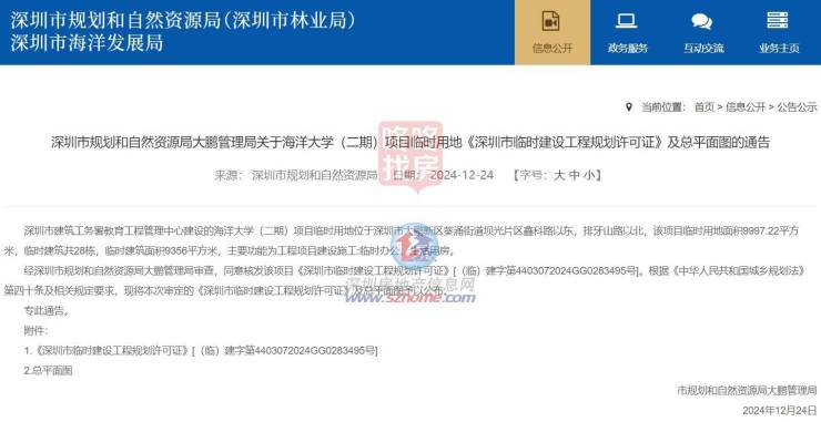 5月30日,海洋大学二期规划在深圳规自局官网公告。