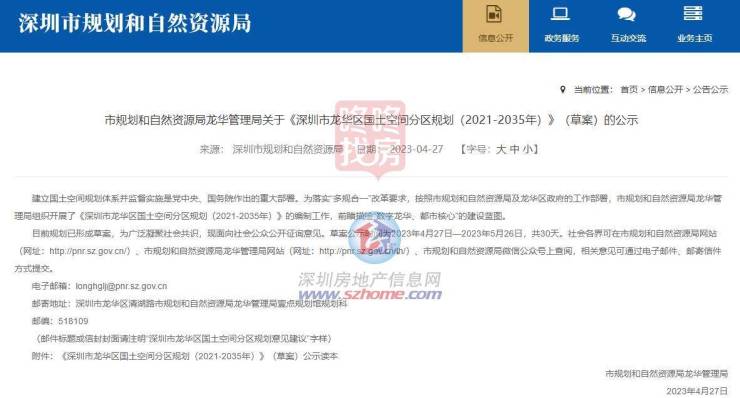 近日,深圳市规划和自然资源局龙华管理局关于《深圳市龙华区国土空间分区规划(2021-2035年)》(草案)的公示。