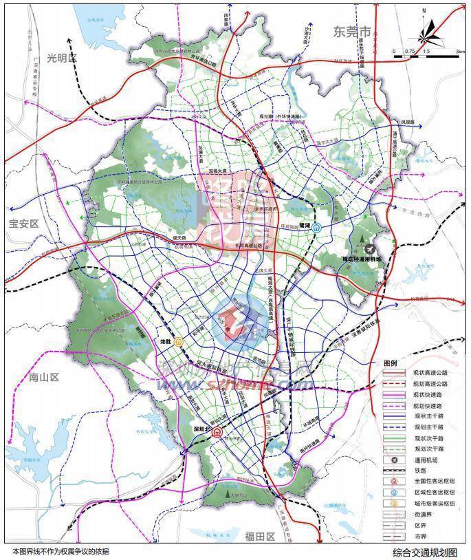 推进深广中轴、深大、深惠等城际铁路建设,提升与粤港澳大湾区重要功能区的联系效率。预留各层次轨道交通线路向东莞地区的延伸条件,面向深圳都市圈拓展龙华1小时交通圈。