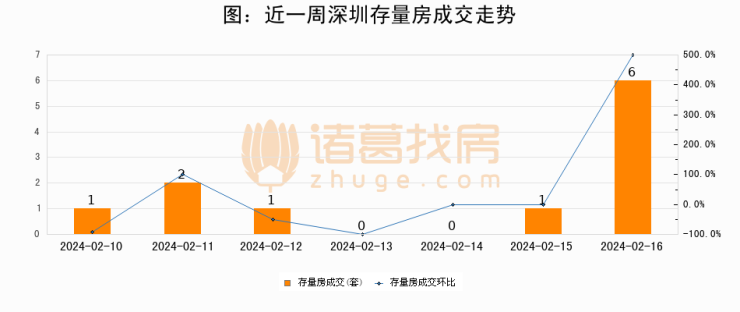从存量房来看,2024年02月16日深圳存量房单日成交6套,比昨日增加5套,环比上涨500%。从近一周存量房成交来看,深圳存量房日均成交套数为1套,02月16日单日成交6套,高于近一周平均水平500%。