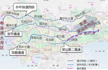 ➲ 新规划的外环快速西延、宝坪、宝鹏三条快速路,可以直接促进宝安、龙华及龙岗等原特区外地区的交通联系。
