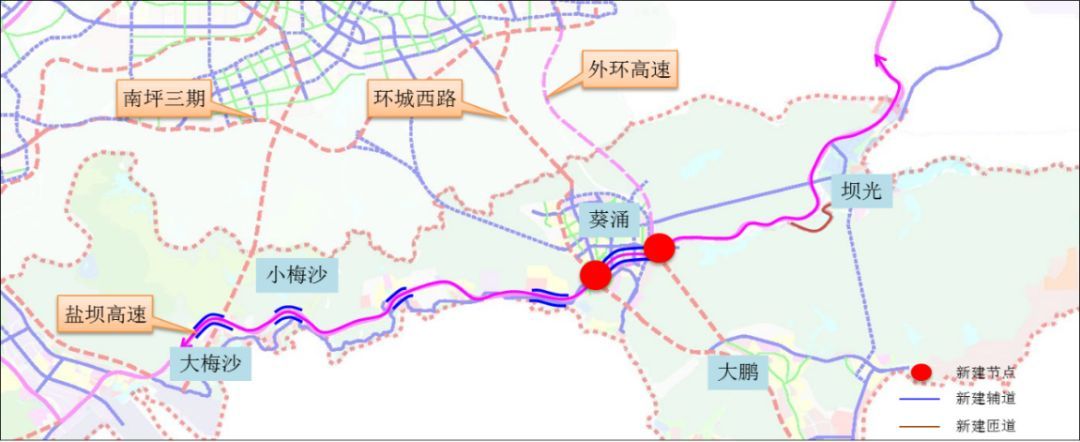❷新建宝鹏通道,市政化改造龙大高速和盐坝高速;